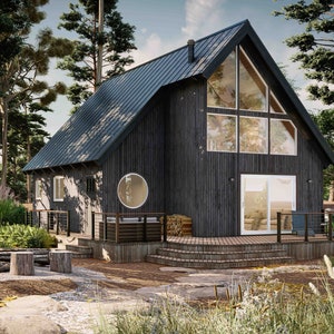 25 X 32 Modern Cabin Plans Pdf 2 Bed 1250 Sf With Etsy
